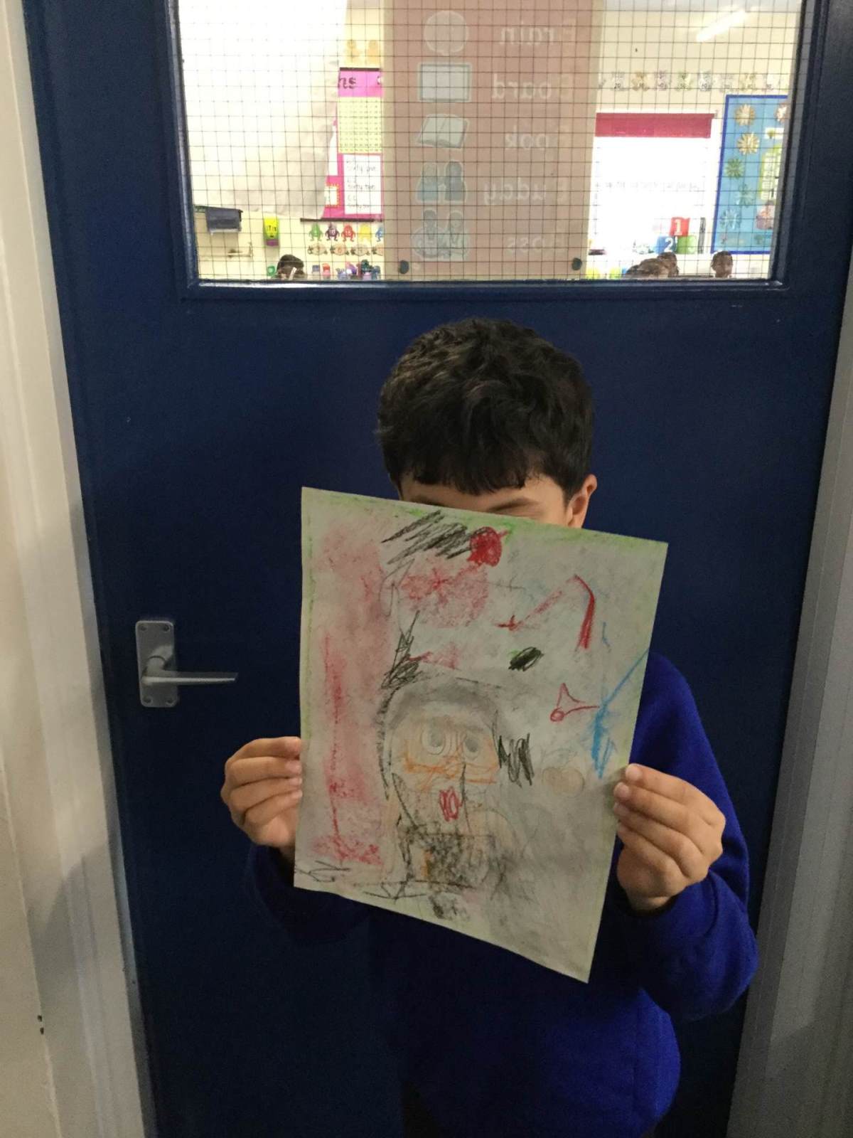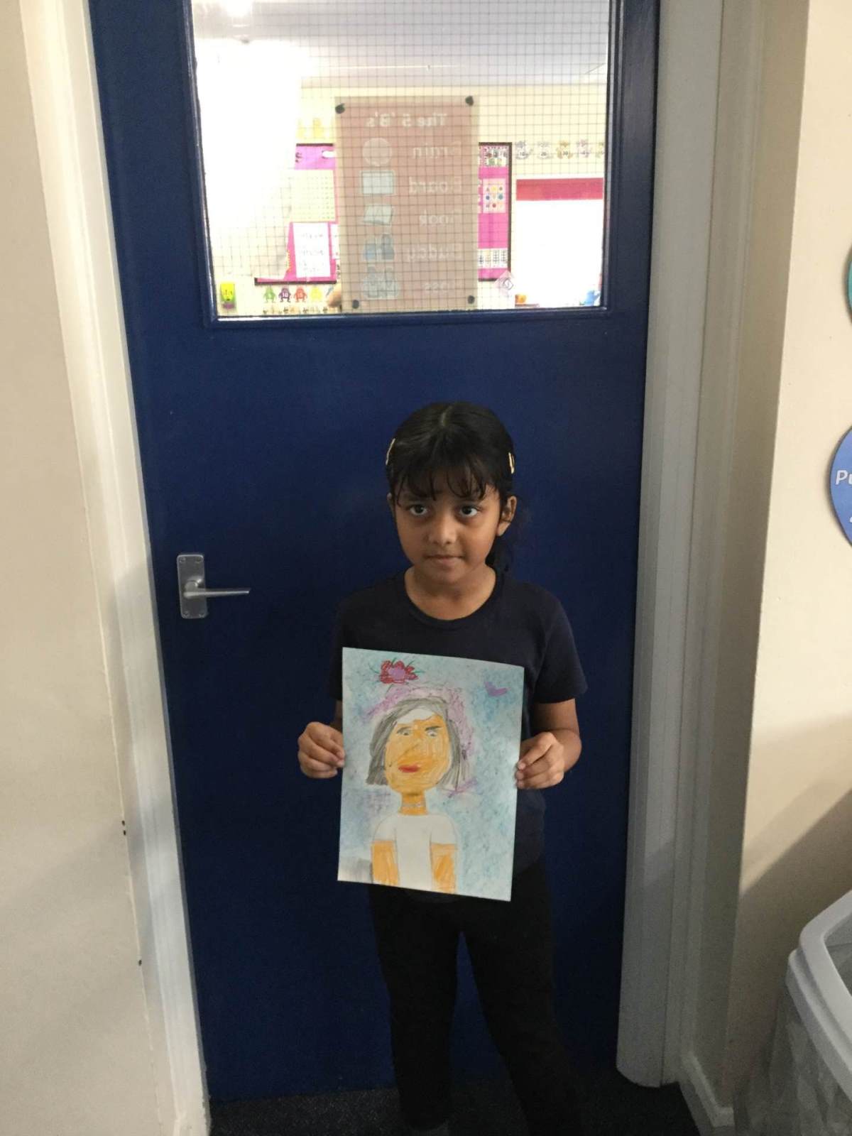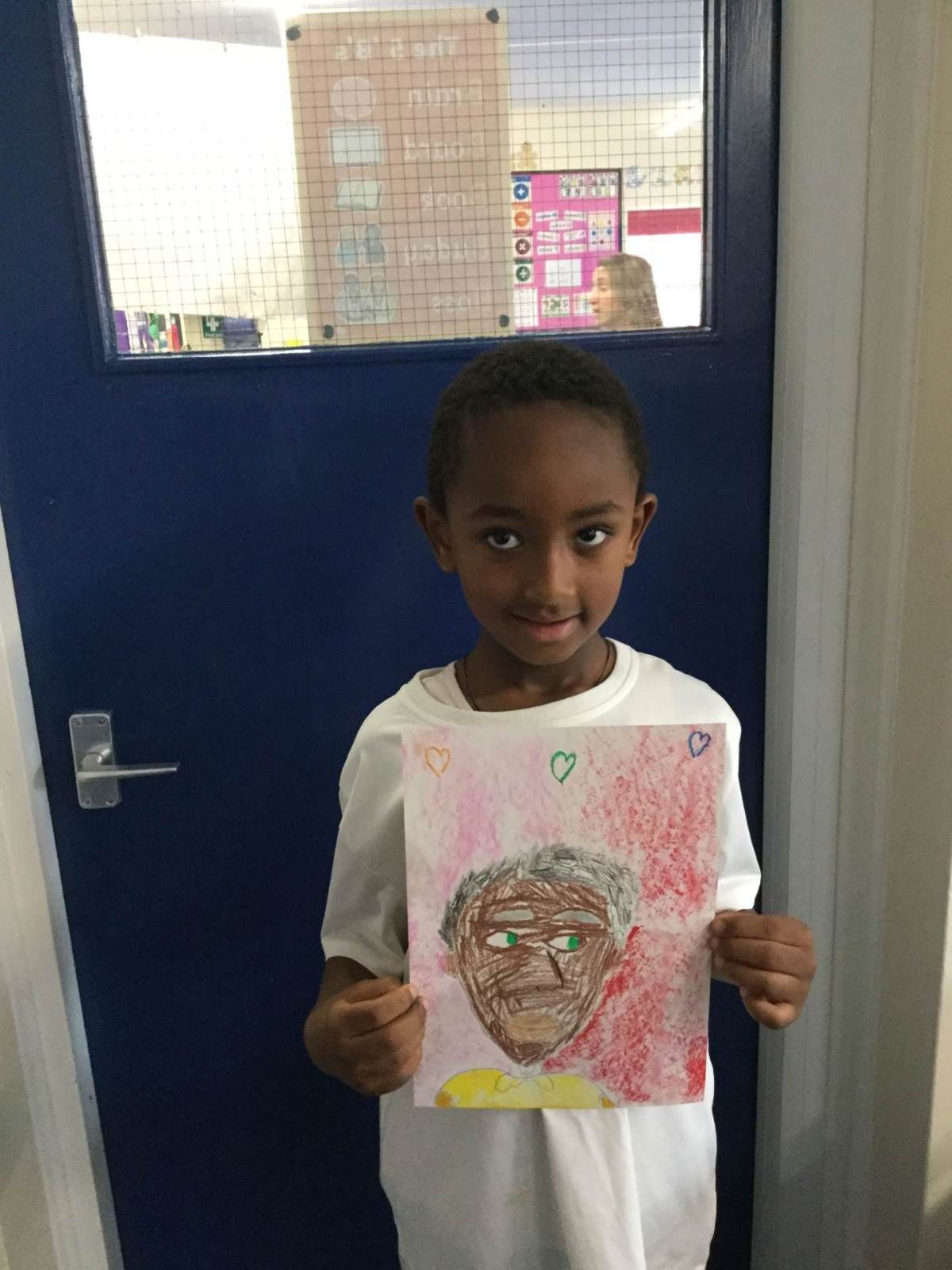 In Art, children created a self portrait of themselves in the style of American artist Kehinde Wiley.